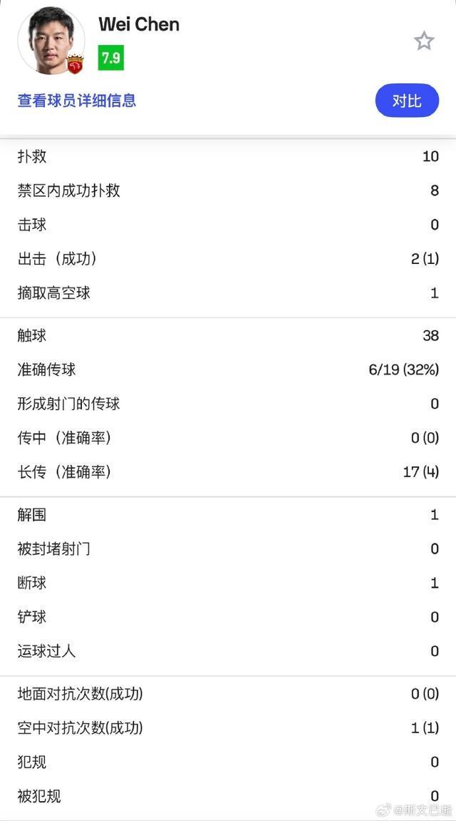 此役,海港队统计数据全面落后,能收获平局离不开门将陈威的出色发挥,扑救次数达到惊人10次。然而,此役首发的海港队二号门将陈威,用近乎战神般的连续扑救,化身对手前锋的叹息之墙。面对广岛三箭队高达21次射门、11次射正,陈威此役贡献了惊人的10次成功扑救,恰恰是海港队门将的开挂级神勇发挥,帮助海港队在0比1之后没有继续丢球,保留了追平比分的可能。下半场,海港队主帅穆斯卡特接连换上莱昂纳多、加布里埃尔等主力球员,以“田忌赛马”的策略在最后时刻发力,最终追平比分。“能够在客场逼平对手是全队努力的结果,大家都非常认真地对待这场比赛,做好迎接困难的准备。我们在最后时刻也取得了进球,这离不开团队一起的努力!”赛后,作为海港队神奇平局的头号功臣,陈威并没有突出个人的价值,而是归功于整个团队的付出。不过,在笔者看来,陈威能在90分钟能连续高接低挡,多少也有好运气的成分。