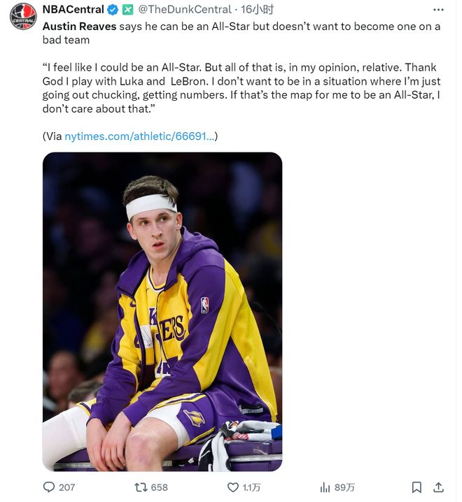 湖人后卫奥斯汀·里夫斯在接受采访时语出惊人:“我完全有能力入选全明星,但我不想靠刷数据来实现这个目标。我不想处在那种只能不断出手、只能刷数据的环境,那样的全明星荣誉我根本不在乎。”这番表态在NBA圈内掀起轩然大波,也让他在这个夏天的续约风波再次成为焦点。今年休赛期,里夫斯做出了一个大胆决定——拒绝湖人开出的4年8920万美元续约合同,这是球队现阶段能提供的最大合约。谈到这个决定时,里夫斯显得相当冷静:“这并不意味着我不想留在洛杉矶,事实上我希望整个职业生涯都能为湖人效力。但是说到底,这是一桩生意。”《洛杉矶时报》湖人随队记者丹·沃伊克在最新报道中透露,里夫斯计划在明年夏天跳出合同试水自由市场,寻求一份年薪3500万至4000万美元的大合同。这意味着他想要的是一份4年总价1.4亿到1.6亿美元的超级合约。如果湖人无法满足他的要价,很可能在本赛季中就将他交易离队。现年27岁的里夫斯虽然只在NBA打了四个赛季,但实际上他比独行侠球星卢卡·东契奇还要年长一岁。他现有的合同是4年5400万美元,2025-26赛季年薪为1394万美元,2026-27赛季是价值1490万美元的球员选项。以他上赛季场均20.2分4.5篮板5.8助攻1.1抢断的数据,在自由市场上拿到均薪2500万美元的合同确实不成问题。然而数据背后隐藏着一些隐忧。上赛季季后赛中,里夫斯的表现出现明显下滑:场均数据降至16.2分5.4篮板3.6助攻,投篮命中率只有41.1%,三分命中率更是跌至31.9%。这样的表现让人不禁质疑,他是否真的配得上一份年薪3500万美元以上的顶薪合同。有球迷一针见血地指出:“里夫斯如果离开湖人体系,未必能打出这样的数据。”在勒布朗·詹姆斯和安东尼·戴维斯身边打球,里夫斯确实获得了更多的进攻空间和机会。一旦脱离这个舒适区,他是否还能维持高效表现确实是个未知数。湖人管理层现在面临艰难抉择。如果无法在赛季中期与里夫斯达成续约协议,他们可能不得不考虑交易选项,以免在明年夏天白白失去这位重要球员。但另一方面,放走这位场均20+5+5的后卫,对球队战力将是巨大打击。里夫斯的自信并非空穴来风。上赛季他三项命中率分别达到46%、37.7%和87.7%,展现出了出色的得分效率。但要在竞争激烈的西部入选全明星,他需要面对的竞争对手包括斯蒂芬·库里、卢卡·东契奇、德文·布克等超级后卫。