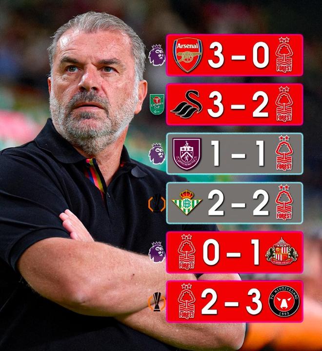 最终,诺丁汉森林2-3爆冷不敌对手。镜头给到了场边的森林主帅澳波,他脸色铁青。9月9日上任以来,澳波一共带领诺丁汉森林踢了6场比赛,一场没赢,期间具体战绩为2平4负。数据显示,澳波成为了100年来首位执教诺丁汉森林前6场比赛全部不胜的主帅(上一位是1925年的约翰-贝恩斯)。让澳波崩溃的是,诺丁汉森林接下来的赛程非常魔鬼,他们本周末要踢纽卡。国际比赛日后,澳波还要带队踢切尔西。