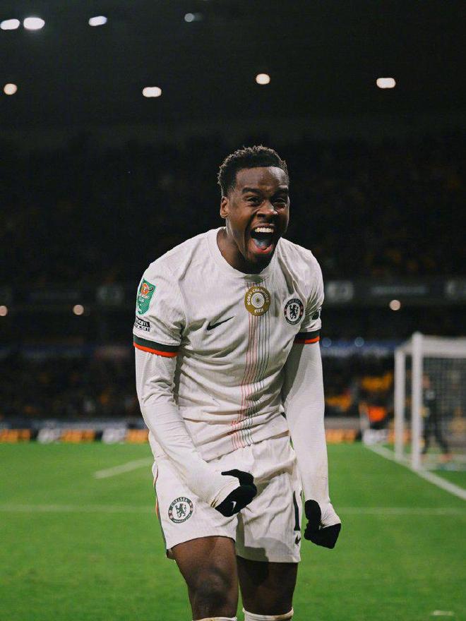 切尔西本场杯赛的开局几乎复制了完美的战术脚本,而21岁的吉滕斯就是这部脚本的执笔人。第5分钟就是吉腾斯的抢断分球展现了他对防守漏洞的敏锐嗅觉,安德烈-桑托斯的弧顶低射则开启了蓝军的进球账户。仅仅10分钟后,吉滕斯沿边路的犀利突破与精准横传,又为19岁的乔治送上空门大礼,将比分扩大为2-0。上半场尾声,狼队后卫洛佩斯的致命失误被埃斯特旺抓住,这位18岁巴西天才的冷静挑射,让切尔西带着3球优势进入中场休息。这场半场狂欢背后藏着更深远的意义:安德烈-桑托斯(21岁)、乔治(19岁)、埃斯特旺(18岁)与后续破门的吉滕斯(21岁)共同缔造历史,使切尔西成为首支单场正式比赛中有四名21岁或以下球员进球的英超球队。62%的控球率和8-2的射门优势,彰显了年轻蓝军在传控体系下的统治力。
