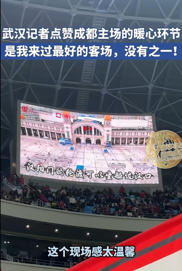 “成都是我来过的最好客场,没有之一。”今年年初的揭幕战中场休息时,球场开启“友城互动”环节。现场响起武汉球迷熟悉的《汉阳门花园》,大屏幕播放武汉城市宣传视频。数百名远道而来的武汉球迷深受感动,感受到宾至如归的温暖。随后,武汉广电文体在线发布记者张曦视频报道此温馨场景。该视频迅速走红网络,点赞数超7500,评论近1400条,被众多官媒、自媒体及网友广泛转发,引发热议。成都的温暖体现在赛事服务的每一个细节中。今年夏日炎炎,成都在客队入场专设“清凉驿站”,为球迷提供防暑物品;推出“票根优惠+特色市集”暖心服务,打造观赛度假新体验,以票根为纽带,串起多元消费场景,这一系列举措,是成都“赛事+文旅”双联动的生动实践。