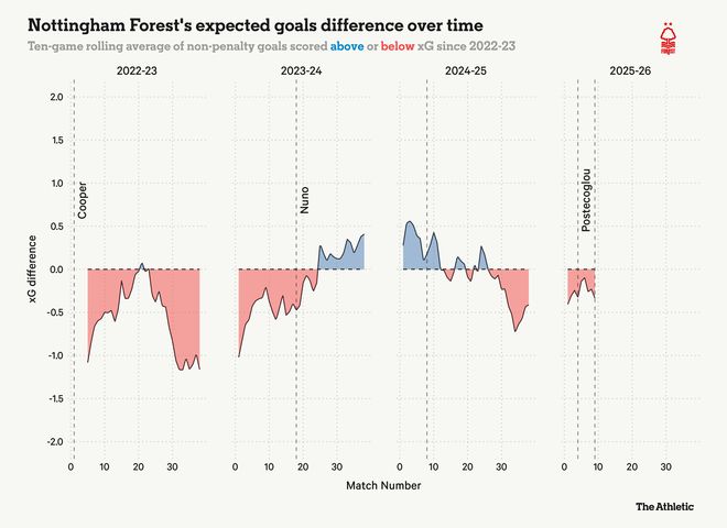 诺丁汉森林一支上赛季足以获得第七名的阵容在去年夏天通过近2亿英镑的引援得到了进一步加强,新增了13名球员。他们目前的挣扎并不能反映更衣室里的质量。他们有足够的实力爬升积分榜。一支拥有穆里略、米伦科维奇、埃利奥特-安德森、吉布斯-怀特和克里斯-伍德的球队应该赢得足够的比赛以避免重返英冠。而且,在戴奇的带领下,森林拥有一位在英超带领俱乐部脱离危险方面经验丰富的主帅。他在伯恩利不止一次做到过,并在埃弗顿再次成功。在经历了几个月的绝对混乱后——努诺自我解职,波斯特科格鲁接替——后者带来了截然不同的足球理念——戴奇的到来恰逢其时,作为稳定局势的关键人物。关于那段混乱时期。不到两个月内更换三位主帅并不是稳定的好配方。这仍然是他们主要的担忧来源——适应第三位不同主帅和第三种方法(尽管风格上与努诺相似)的挑战可能过于艰巨。而且——虽然这只是对阵一支非常优秀的球队的一场比赛——在伯恩茅斯的失利清楚地表明了戴奇需要做多少工作才能让森林恢复到最佳状态。戴奇需要将森林队从波斯特科格鲁试图灌输的高风险、冒险心态中转变出来,并找到一种方法恢复他们曾经的防守稳固、组织严密和快速反击能力,这些曾是他们的标志和成功的基石。他还有29场比赛来实现这一目标。森林上赛季的欧冠资格争夺因浪费机会而失败,这种挥霍延续到了新赛季。由克里斯-伍德领衔,森林在2024-25赛季的预期进球超出了联赛最高的11.4个。重新找回那种精准射门对于他们的保级希望至关重要。