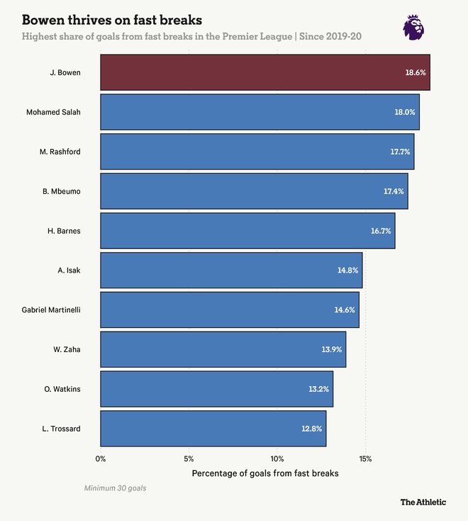 西汉姆联俱乐部岌岌可危的联赛位置和降级的财务影响将迫使高层在冬季转会市场上大力支持主教练努诺。他们上次英超地位受到威胁是在五年前冬窗前夕。西汉姆联当时徘徊在降级区上方,这导致了莫耶斯取代佩莱格里尼的重新任命,并在冬季迎来了鲍恩和绍切克等中坚力量。两人在确保西汉姆联安全方面发挥了关键作用,努诺希望潜在的新援也能产生类似的影响。在此之前,主教练将依靠鲍恩、帕奎塔、菲尔克鲁格和萨默维尔组成的进攻四重奏发挥亮点。鲍恩、帕奎塔和菲尔克鲁格分别是各自国家队的国脚,他们在赛季关键时刻的经验可能至关重要。现在来说说坏消息。防线仍然漏洞百出、容易犯错且在角球防守中脆弱。西汉姆联本赛季已经从定位球中丢了九个球,是英超最多,也是联赛历史上前九场比赛后丢球最多的球队。中卫搭档托迪博和基尔曼继续退步,而租借球员伊戈尔-儒利奥则未能给努诺留下深刻印象。球队对鲍恩的依赖依然严重。他在客场1-2输给利兹联的比赛中助攻马特乌斯-费尔南德斯,在1-1战平埃弗顿的比赛中打入扳平进球,并在8月3-0战胜诺丁汉森林的比赛中引领了最后的进球潮。绍切克此前也在关键时刻挺身而出,但没有鲍恩,球队内部缺乏进攻效率。32岁的菲尔克鲁格容易受伤,33岁的威尔逊更适合替补登场,而20岁的卡勒姆-马歇尔作为一名年轻前锋仍在发展中。尽管帕奎塔才华横溢,但他有时会在比赛中隐身,而萨默维尔在伤停九个月后仍在寻找节奏。更糟糕的是,西汉姆联接下来的比赛包括纽卡(主)、伯恩利(主)、伯恩茅斯(客)、利物浦(主)、曼联(客)、布莱顿(客)、阿斯顿维拉(主)和曼城(客)。这将是努诺球队的关键时期,很难想象不会以一系列失败告终。再一次,西汉姆联的希望寄托在他们的护身符鲍恩肩上。这位前锋打进了球队本赛季43%的进球,支撑着他们磕磕绊绊的进攻。至少努诺的反击风格应该能发挥他的优势——自2019-20赛季以来,没有球员在快速反击中进球比例更高。