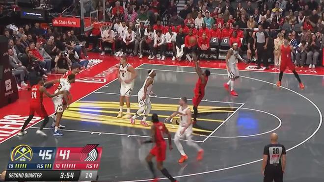 今天面对来势汹汹的掘金,开拓者也没有掉链子,前三节打完都没有被甩开,第三节打了过半还是以68比67领先掘金1分,对于一支年轻且正在尝试回到正轨的球队来说,很不错了。但这一切,跟杨瀚森没什么关系。