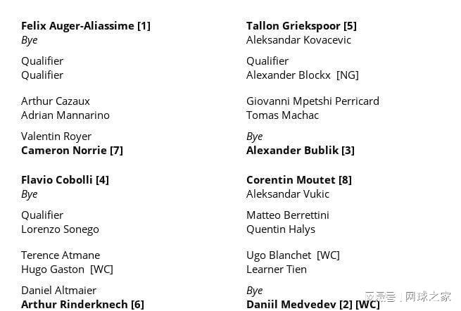 下半区中,梅总将作为二号种子出征,理论上他还有进入年终前十的机会,也具备入围年终总决赛替补的机会。不过这次他很可能在次轮又对位上勒纳钱,四分之一决赛的潜在对手又是穆泰,真令人叫苦不迭!其他种子球员还有荷兰一哥格里克斯普尔、同样为总决赛替补资格努力的布勃利克。