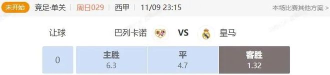 2.专家:至尊宝竞足 周日029 西甲 巴列卡诺VS皇马开赛时间:2025-11-09 23:15:00