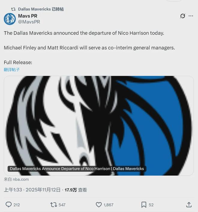 果然,今天一觉醒来,就看到了这个消息。篮君身边很多小牛球迷都觉得大快人心,觉得“天亮了”,但事实真的如此吗?没有了哈里森,还会有下一个“白手套”。
