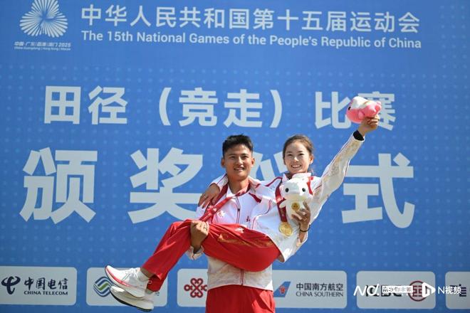 魏新猛突然俯身,一个扎实的“公主抱”将冠军妻子稳稳托起。杨家玉轻搂他的肩膀,笑意从嘴角漾至眼底。那一刻,竞技场的荣光与私密的情感在滨海赛道上交织,成为全场最动人的风景。