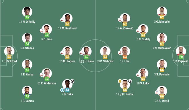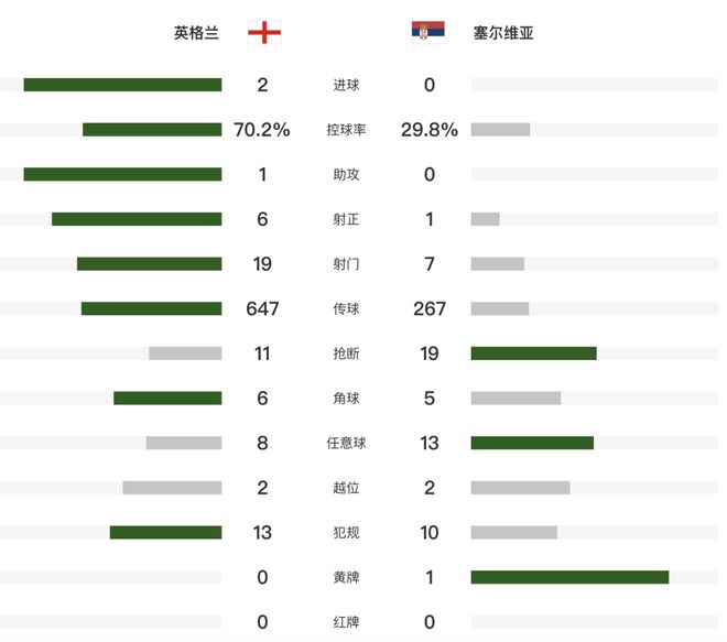 出场阵容英格兰(4231):1-皮克福德;3-里斯-詹姆斯,2-孔萨,5-斯通斯,18-奥赖利;4-赖斯(65‘8-亨德森),21-安德森;7-萨卡,15-罗杰斯(65‘10-贝林厄姆),11-拉什福德(64‘19-埃泽);9-凯恩(65‘17-福登)塞尔维亚(4231):1-拉伊科维奇;2-米莫维奇,4-米伦科维奇,3-帕夫洛维奇,22-特尔季齐;6-古德利,10-卢基奇;14-日夫科维奇,17-伊利奇,11-科斯蒂奇;23-弗拉霍维奇相关资讯