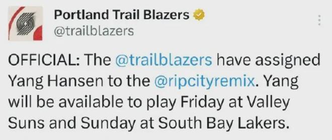 言归正传,杨瀚森在开拓者已失去了轮换位置,连续六场被DNP,所以与其枯坐冷板凳,能到G联赛打比赛挺好的,毕竟得上场打球才能涨球,老是当VIP观众可不行。