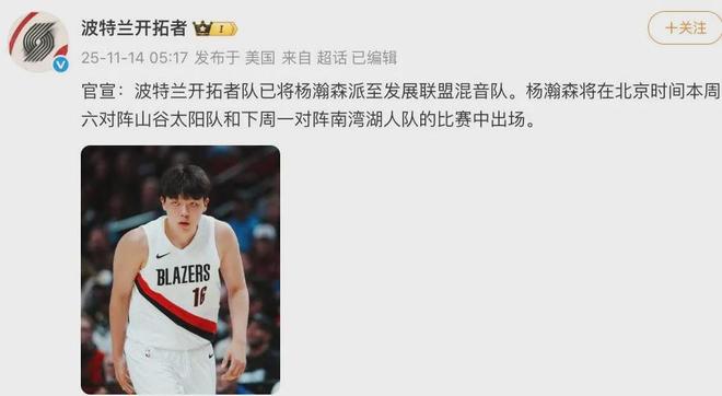 于是接下来的G联赛之旅,对于杨瀚森来说既是证明自己的绝佳机会,同时是一种新压力,若作为首轮16号秀在发展联盟都没有出彩发挥的话,更难在正赛获得开拓者的信任,到时出场机会就更加寥寥无几。