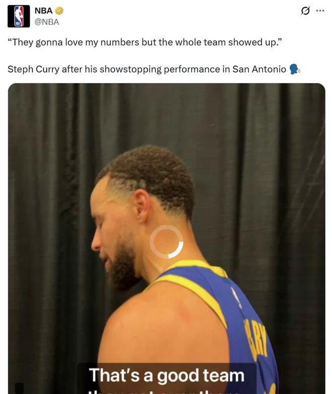 3个小细节也值得关注在库里打出现象级表现的夜晚,勇士队这三个小细节也同样值得关注。细节一:库里称赞全队赛后交出现象级表现的库里几乎将全队球员点名夸了个遍,库里说道:“对手很出色,想尽一切办法要拿下胜利,但你就是要在这种磨砺中找到办法,外界可以更喜欢我的数据,但我想说的是本场比赛我们全部球员都站了出来,波杰、追梦、小佩顿、穆迪、霍福德、巴特勒等等,大家都站了出来,我太爱这种画面了。”