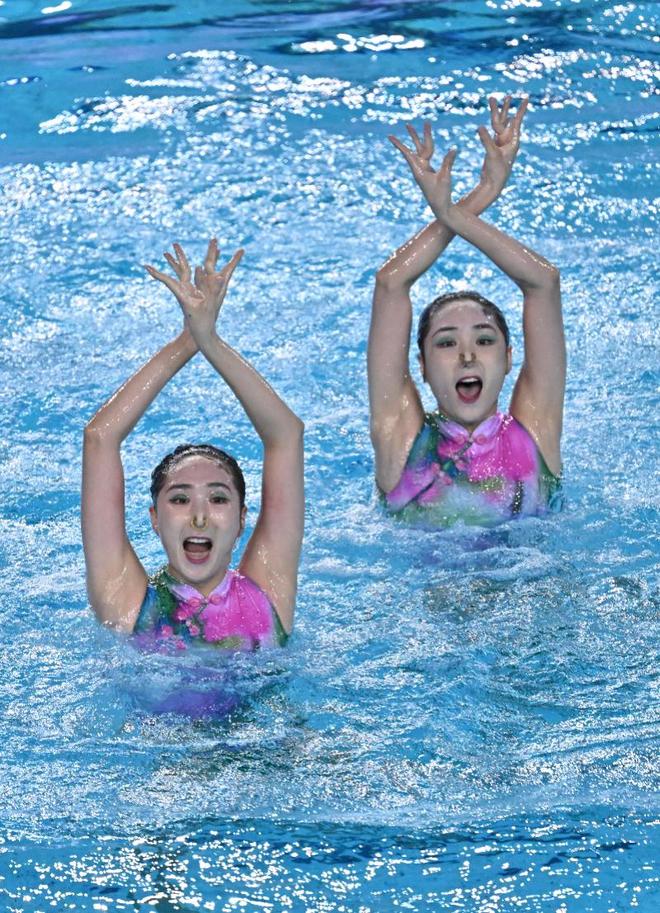 本届全运会花样游泳女子双人项目由技术自选、自由自选两部分组成。在11月15日上午开展的技术自选项目赛事中,广东队选手王芊懿、王柳懿凭借曾在巴黎奥运会夺冠的经典作品《莲》斩获该项目头名,为冲击最终双人项目金牌奠定坚实基础。在晚上的自由自选项目赛事中,两人再度展现出奥运级水准,将力量与柔美融为一体,最终以领先第二名北京队25.1197分的绝对优势锁定金牌,为广东代表团再添荣耀。北京队、北京体育大学队分别以560.8621分、536.6096分获得亚、季军。