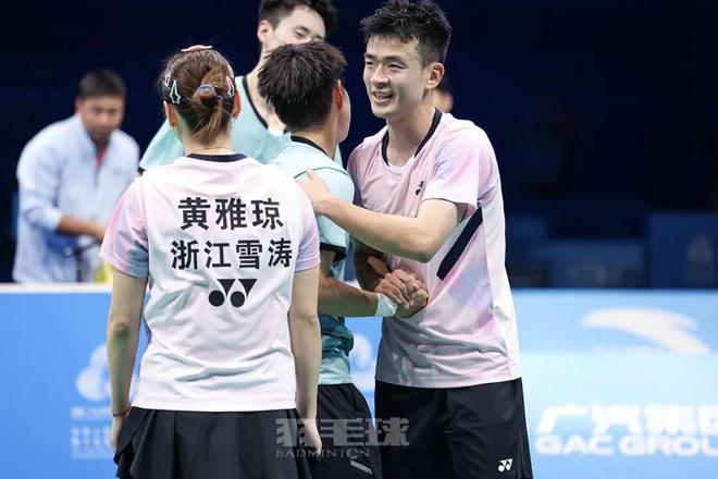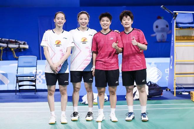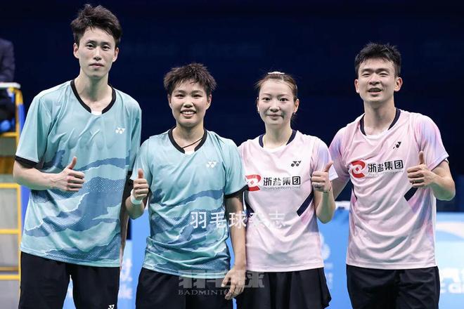 另一张照片,是黄东萍、欧烜屹与郑思维、黄雅琼的合影。他们联手奉献过无数场混双赛场的“神仙对决”,他们写就着国羽混双历史的辉煌成就。