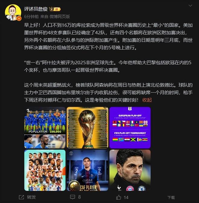 上一个夏窗,塞梅尼奥在曼联的引援名单中,对球员有意的球队还包括热刺。利物浦也对塞梅尼奥感兴趣,并且想要签下他。消息来源:罗马诺4 - 考验时刻知名评述员詹俊在个人微博称:这个周末英超重燃战火,榜首球队阿森纳将在周日与热刺上演北伦敦德比。球队的主力中卫巴西国脚加布里埃尔由于内收肌拉伤,很可能将缺席一个月的时间,枪手下周还将对撼拜仁与切尔西。这是考验他们的关键时刻!