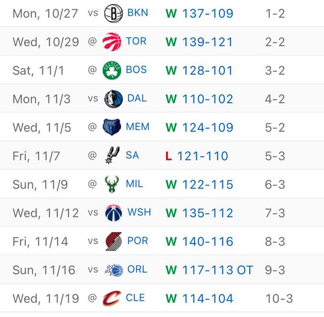 回顾火箭的13场比赛,火箭0胜2负开局后,迎来5连胜,连续击败篮网、猛龙、凯尔特人、独行侠和灰熊,输给马刺后,他们又打出5连胜,接连战胜雄鹿、奇才、开拓者、魔术和骑士。目前,火箭10胜3负,排在西部第三。
