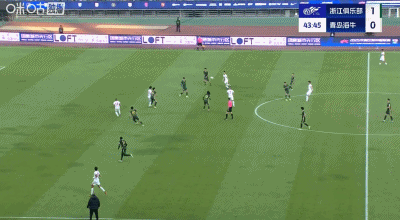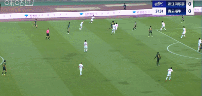 浙江队2-2青岛海牛第32分钟,弗兰克头球破门,完成50球里程碑,这是他的告别战进行,浙江1-0!