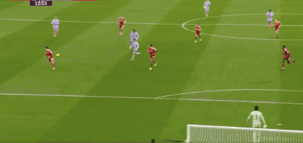 上半场结束,两队联手贡献了17次射门,利物浦1-0暂时领先。下半场开始后,两队互有攻守,比赛节奏相当快。第47分钟,埃基蒂克连续横向盘带后打了一个反角,他自己对这一次的射门并不满意。