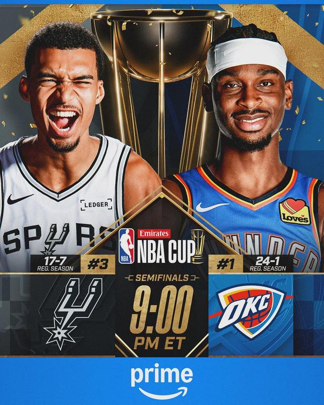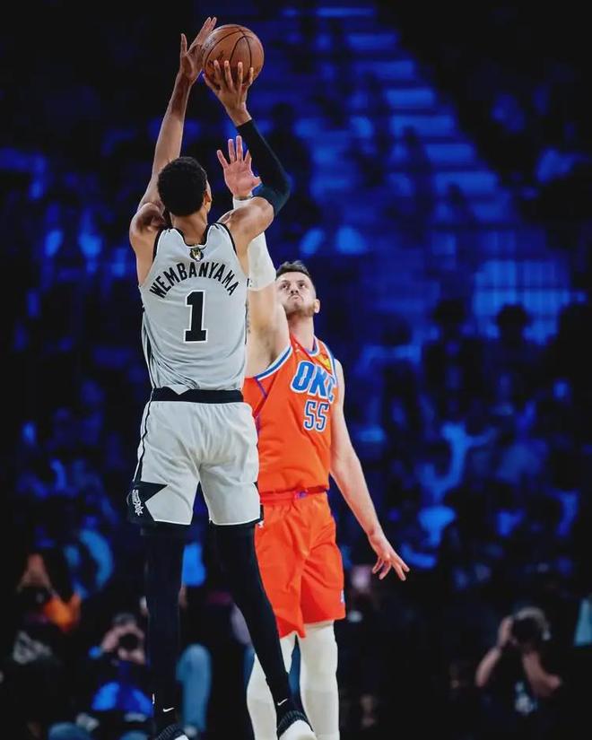 文班的牵扯力太强了,雷霆防守注意力都在他身上,就会漏掉其他马刺球员。三节战罢,马刺78-77领先雷霆1分。福克斯和卡斯尔前三节合砍35分,亚历山大23+3+3。末节决战,文班和杰威各自带着第二阵容,文班大帽霍姆格伦。文班前三节得到7分,末节得分上双。最后2分半钟,马刺102-101领先1分,比赛进入白热化。38秒文班上篮不中,回过头来,霍姆格伦造成文班犯规,2罚2中,雷霆依然落后2分。雷霆犯规战术,文班2罚1中,亚历山大快速扣篮得手。雷霆继续犯规,卡斯尔2罚2中。最后9.8秒,雷霆落后3分。马刺主动犯规,跟雷霆比点球,霍姆格伦2罚1中。雷霆没希望了,全场结束,马刺111-109险胜雷霆,终结雷霆16连胜。恭喜马刺淘汰联盟第一,正式杀进NBA杯决赛。