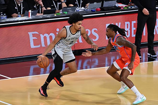 本场比赛中,马刺的替补后场新秀迪伦-哈珀(Dylan Harper)的表现并不理想,完全没有发挥出自己的特点。哈珀全场出场24分53秒,投篮13中3,三分线外5中1,罚球2中1,得到了8分4篮板1助攻1抢断1盖帽的数据,还有3次失误和4次犯规,正负值为0。哈珀在进攻端效率不佳,他的得分能力完全没有发挥出来,他在进攻端的选择也存在着不小的问题,他的外线投篮稳定性也是一塌糊涂的水平。作为一名控卫,他在传球和组织方面也同样没有发挥出自己的特点,而且他在防守端的表现也是相当一般的。总体来看,哈珀在场上完全没有起到任何的作用,他本应该在场上起到更大的作用的,这样球队可能也会赢得更加顺利一些。