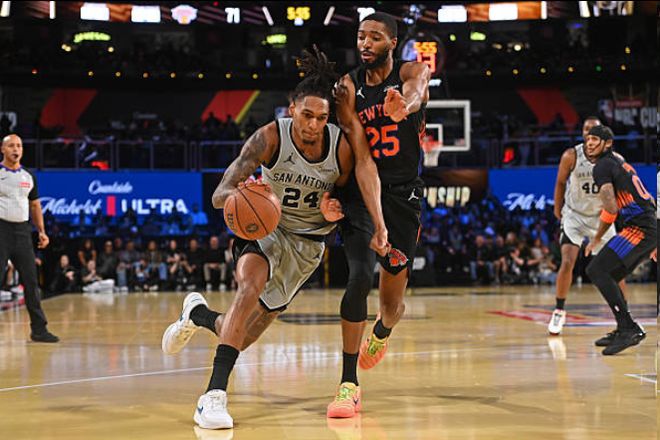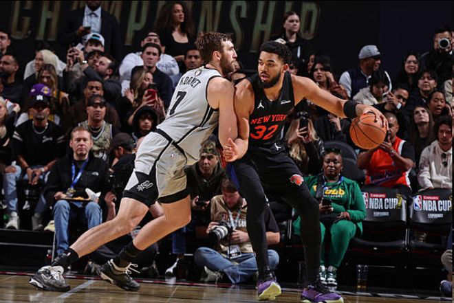 在本场比赛之前,唐斯摸了摸NBA杯的冠军奖杯,在唐斯的带领下,尼克斯内线更加具有优势,球队抢下了59个篮板,领先马刺17个,凭借着内线优势,尼克斯取胜。相关资讯