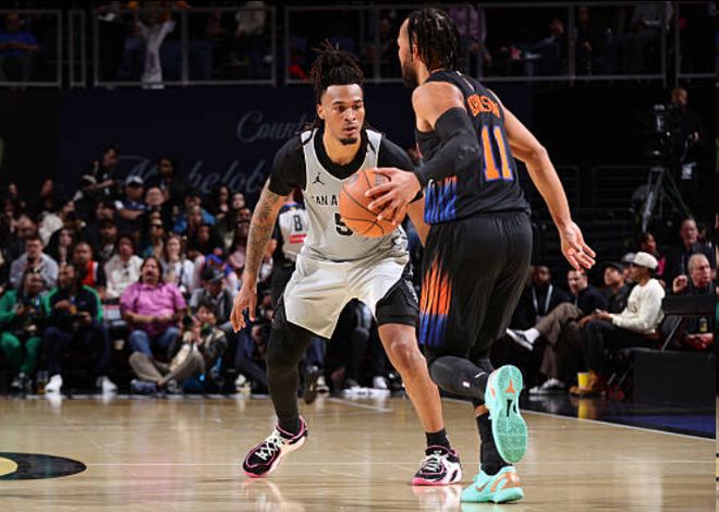 有意思的是,本场比赛,马刺仍然是全民皆兵,球队7人得分上双,但是尼克斯同样6人得分上皇,特别是阿奴诺比和布伦森得分均有25分以上,与尼克斯相比,马刺的“球星时刻”还是少了些光环。