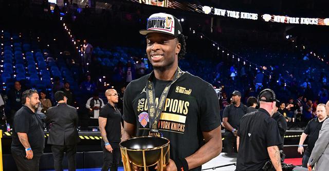 北京时间12月17日,纽约尼克斯在NBA杯决赛以124-113逆转险胜圣安东尼奥马刺,夺得本届NBA杯冠军。尼克斯前锋OG-阿努诺比此役命中5记三分高效贡献28分9篮板3助攻,他生涯迄今已经先后捧获NBA总冠军与NBA杯冠军奖杯。“阿努诺比就是我们球队本场比赛的最佳防守球员!”尼克斯主帅迈克-布朗在赛后夸道。而阿努诺比自己并不揽功,他在赛后深情致谢尼克斯球迷:“今天现场来了很多尼克斯球迷,无论我们走到哪里,都会有很多尼克斯球迷在追随着我们,我们对此满怀感激,他们是全世界最好的球迷。”(NBA)相关资讯