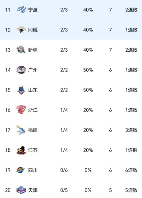 上一轮,四川队主场51分惨败北京队,仅得到46分,创造CBA历史单场第二低的得分纪录。本场比赛,四川队客场挑战深圳队,尽管全队表现不错,但还是打不过,上半场落后12分,最终87-96不敌深圳队,遭遇开局6连败,尽管景菡一24分6板5助、段睿骐20分1助3断纷纷贡献不错的数据,但无力救主。另外吉林队VS北控队的对决,也是十分精彩。