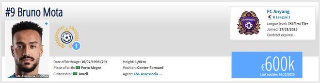 现年29岁的巴西前锋莫塔2025赛季加盟K联赛球队安养队,本赛季总共代表球队出战37场,攻进14球并送出3次助攻,进球数与朱玟奎并列射手榜第4。德转的最新信息显示,莫塔的身价仅为60万欧,仅为拉唐身价的五分之一。引进两名新外援,就意味着申花阵中至少要有2名外援离队,其中一人已经基本确认,那就是合同到期的安德烈-路易斯。记者甘慧此前曾发文称,路易斯离队基本已成事实,原因在于他的数据未能激活新合同,并且斯卢茨基教练组在新赛季战术设计中也没有他的位置。路易斯本赛季代表申花出战30场比赛,攻进15球并送出3次助攻,整个申花生涯他总计出战69场,攻进36球并送出13次助攻。
