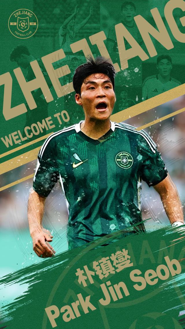 1月3日,中超浙江队与全北现代俱乐部共同官宣,韩国籍国脚朴镇燮加盟浙江队。