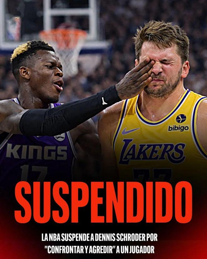 来自NBA官方的消息,因为在2025年12月29日对阵湖人的赛后试图殴打一名湖人球员,国王后卫丹尼斯施罗德被停薪禁赛三场比赛。