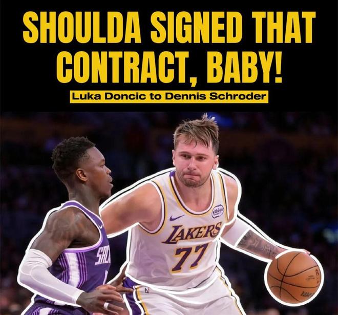 此前湖人对阵国王的比赛里,东契奇曾与施罗德在场上发生口角,东契奇向施罗德喷垃圾话:“宝贝,你当初真该签下那份(4年8000万)合同。”